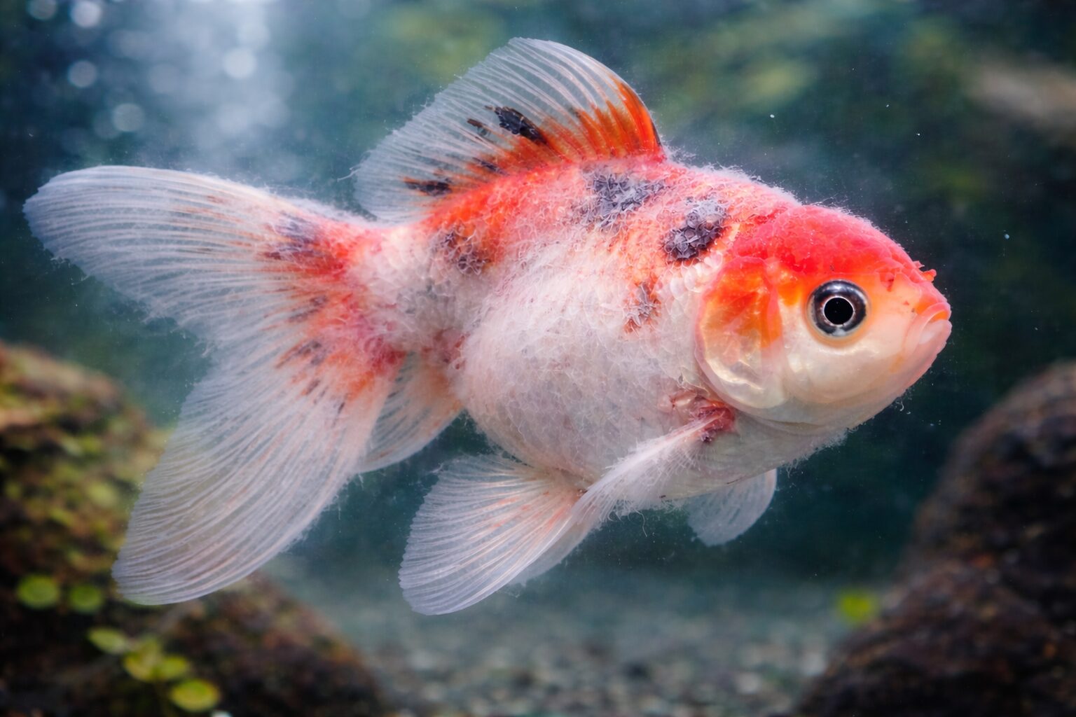 金魚の体の一部に、白い綿のようなフワフワした付着物が現れる病気です。